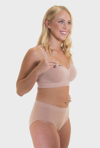 Both variants are made from the same ultra-soft bamboo rich fabric for breathability and unparalleled comfort that's gentle on delicate skin. Our nursing bra features a one-hand drop cup for ease of access, with an inside support sling for extra bust support.